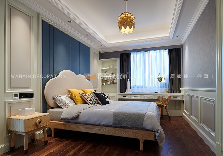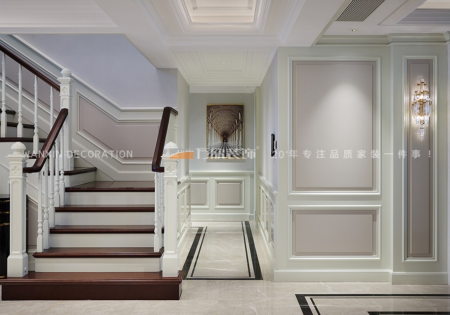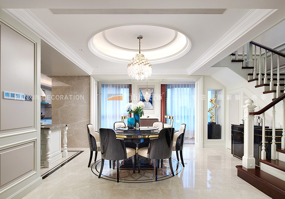 風格特點:本案設(shè)計摒棄原有美式的復雜與空間線條,在滿足收納功能的基礎(chǔ)上讓空間更通透,原本戶型方正,更體現(xiàn)出細節(jié)的重要性。居家層次分明,不沉悶,讓居室更舒服。