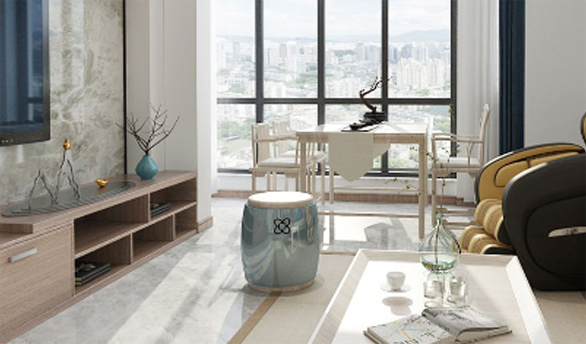 客廳提取山水和原木元素,與自然共舞的空間營造,體現(xiàn)主人典雅質(zhì)樸、大方端莊的審美趣味。紅色系抱枕的點綴,畫中“千山鳥飛絕”的融入;呈現(xiàn)出了艷而清潤,淡而彌永;規(guī)矩中有飄逸,工整中有瀟灑;簡約處不空泛,充實處無閉塞;有情有境,有韻有質(zhì),真力彌漫,卓爾不群。結(jié)合了摩登東方式的哲學(xué)和審美,并以“采菊東籬下,悠然見南山”的生活方式演繹。