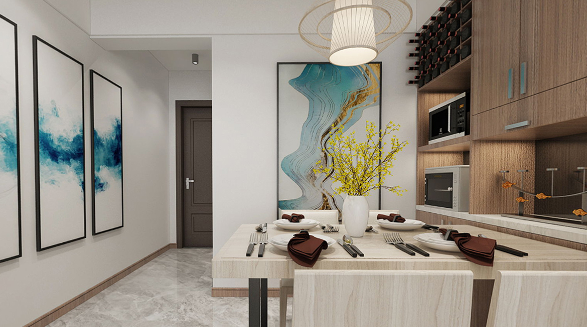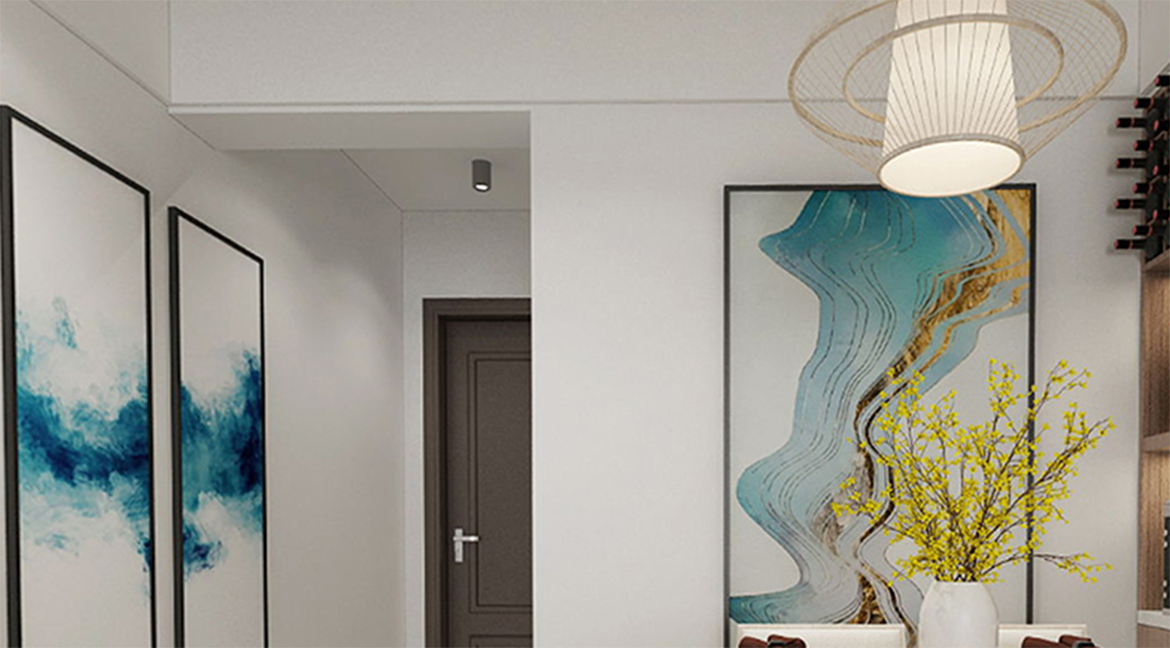 掛畫與燈的碰撞,餐桌上的花與掛畫中的鎏金的演繹,仿佛在訴說“盡可享人間山光水色,暗夜里閑落燈花;吟詩對弈,便可消天下清風(fēng)月”懶洋洋的燈光打在餐桌上,餐桌有著家人所喜愛的可口飯菜,在家人臉上的笑容中,訴說的是一段段其樂融融的用餐時光。
