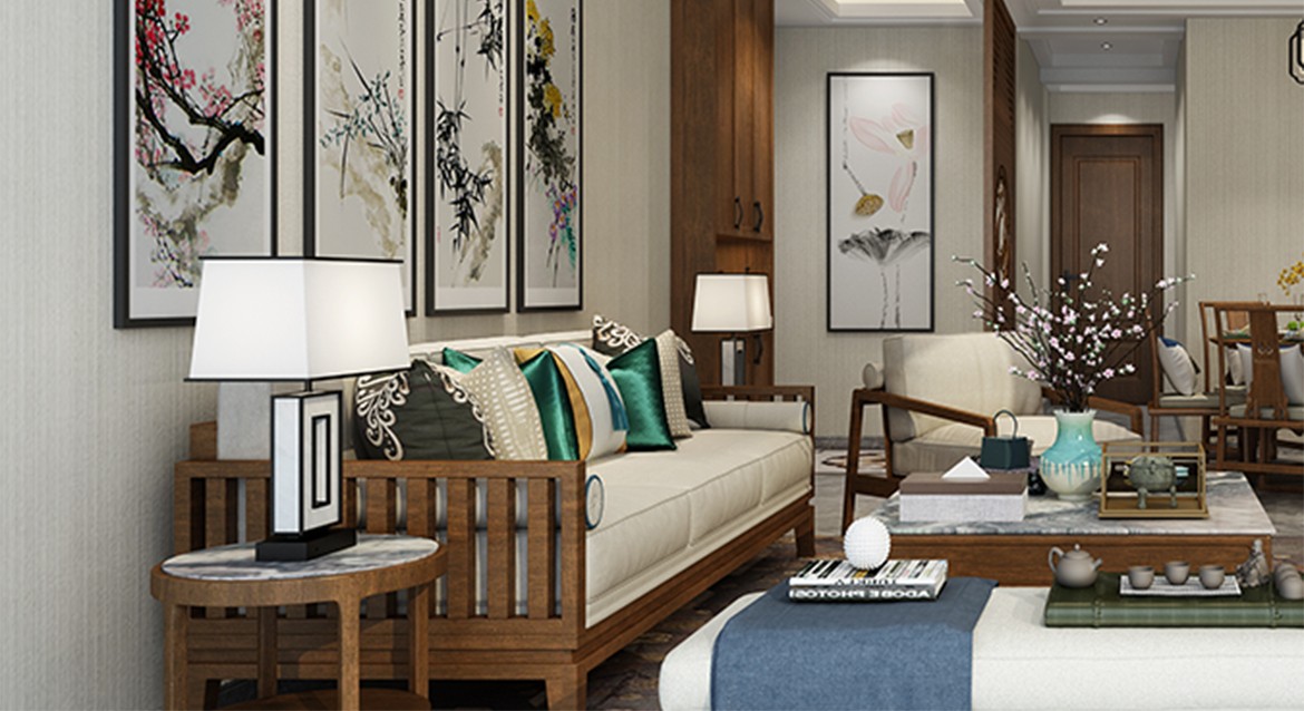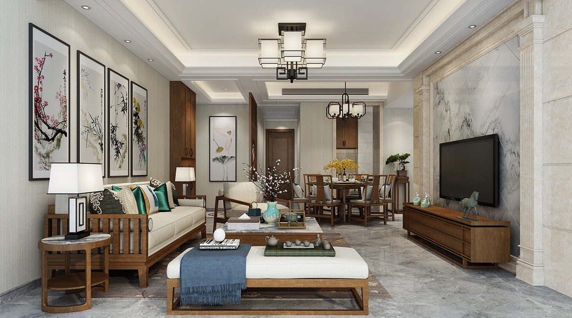 客廳綴以花和竹子元素背景,營造出空靈的寫意,讓人心曠神怡。一抹盎然綠意讓空間瞬間鮮活起來。沙發(fā)木色襯以幽深清冷的墨綠茶托,不經(jīng)意間帶出一份屬于古代文人的高雅韻味。