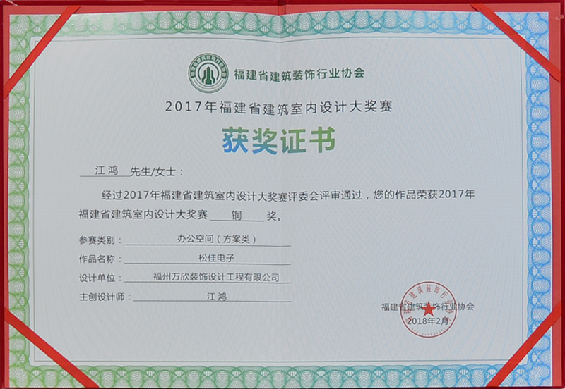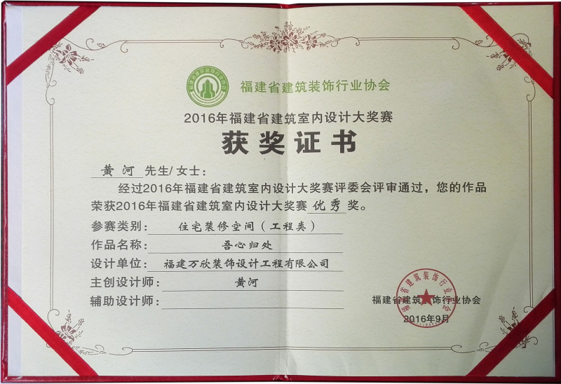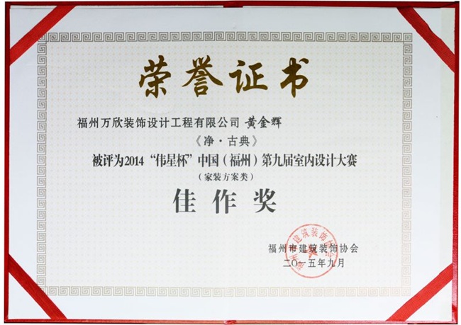 - >獲得福建省首屆家裝節(jié)多項(xiàng)設(shè)計(jì)大獎(jiǎng)
