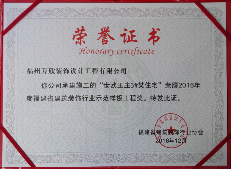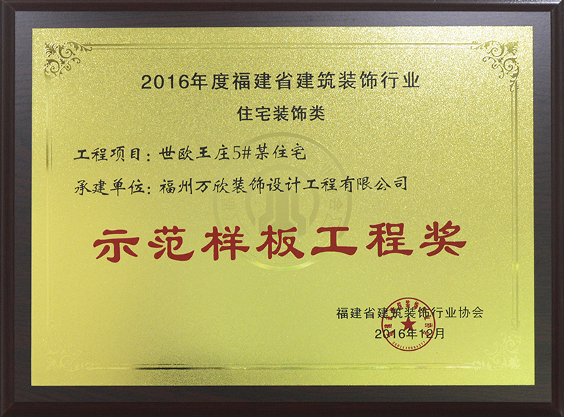 - >“世歐王莊5#某住宅”榮膺2016年度福建省建筑裝飾行業(yè)示范樣板工程獎(jiǎng)