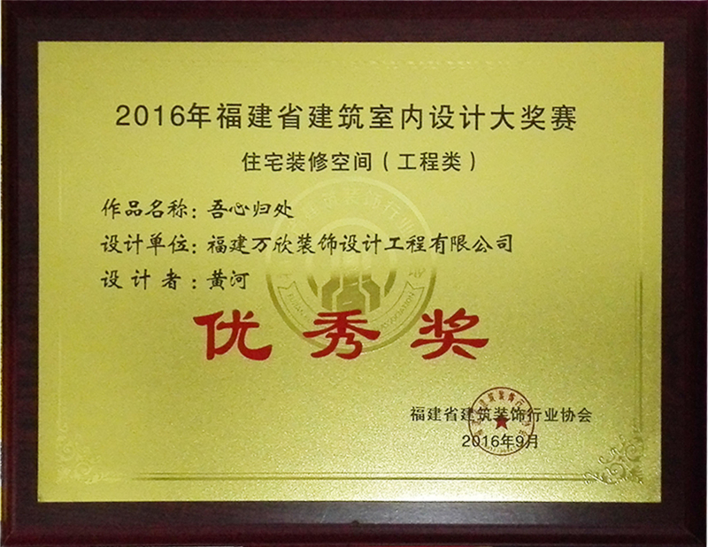 - >萬(wàn)欣裝飾作品《吾心歸處》榮獲2016年福建省建筑室內(nèi)設(shè)計(jì)大獎(jiǎng)賽優(yōu)秀獎(jiǎng)