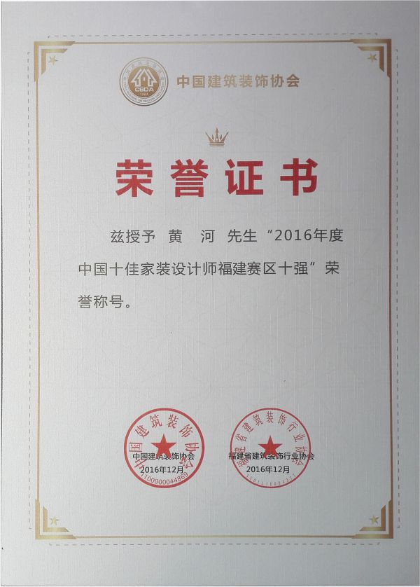 - >黃河榮獲“2016年度中國(guó)十佳家裝設(shè)計(jì)師福建賽區(qū)十強(qiáng)”稱號(hào)