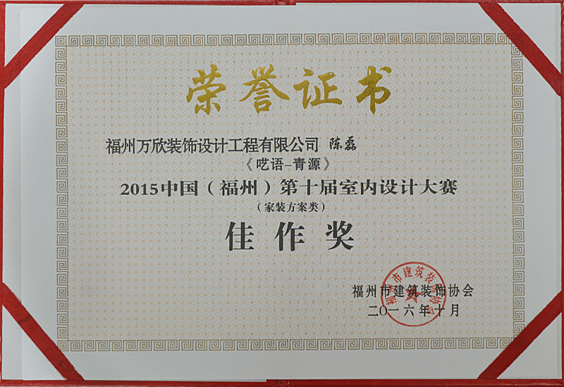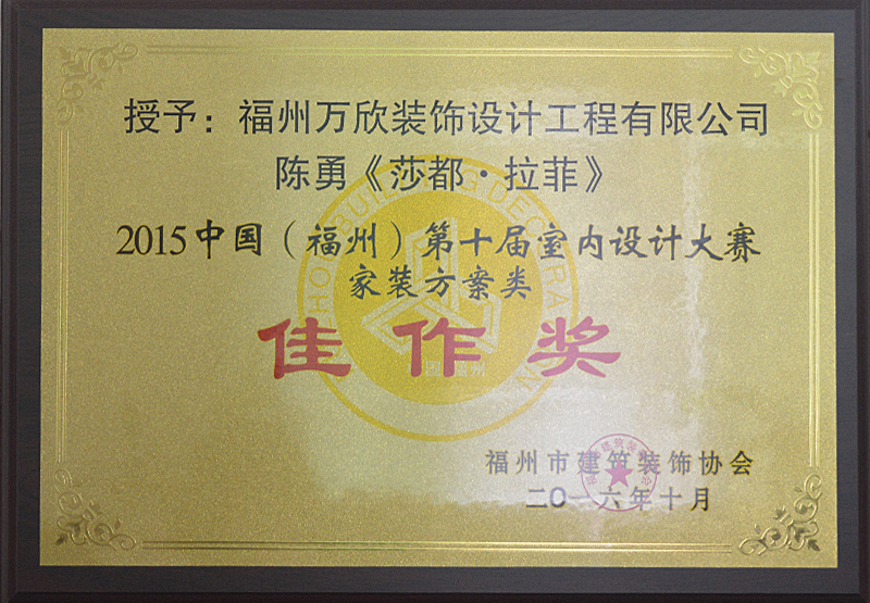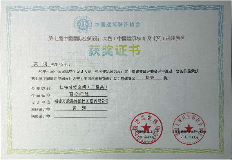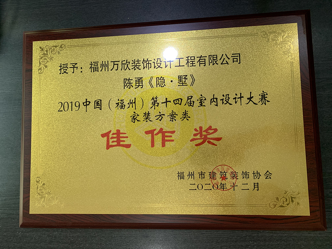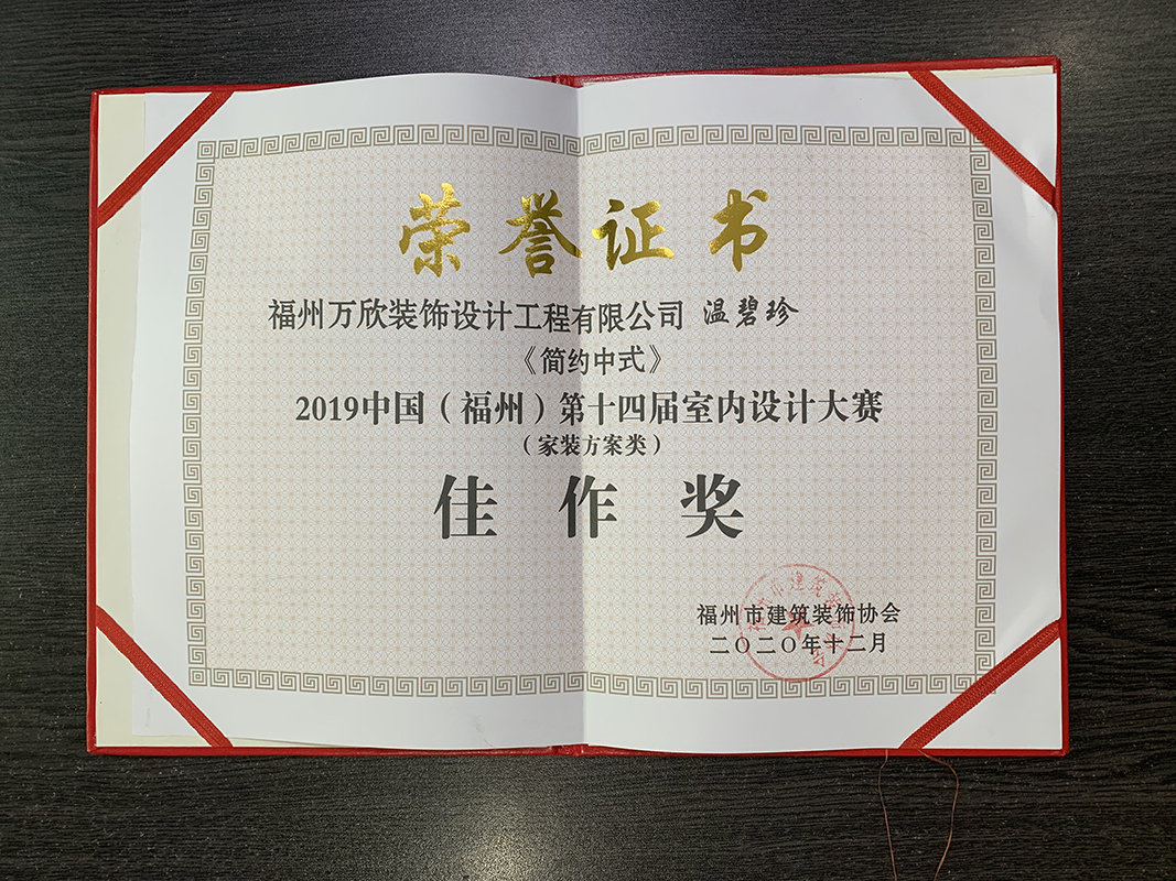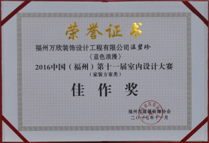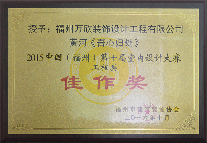 - >福州市裝協(xié)授予萬(wàn)欣裝飾“心家泊5#204”為福州住宅裝飾優(yōu)良工程