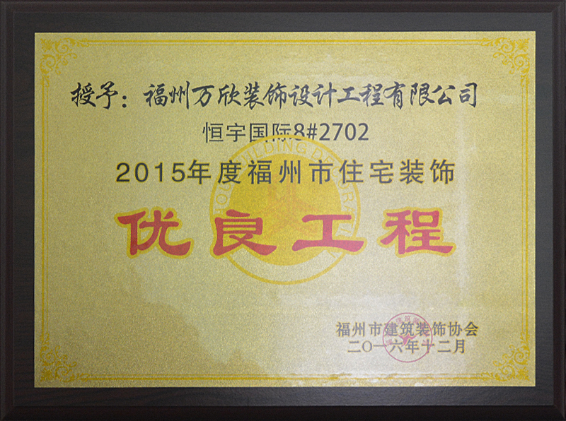 - >萬(wàn)欣裝飾“泰禾金尊府8#203”被福州市裝協(xié)評(píng)選為優(yōu)良工程