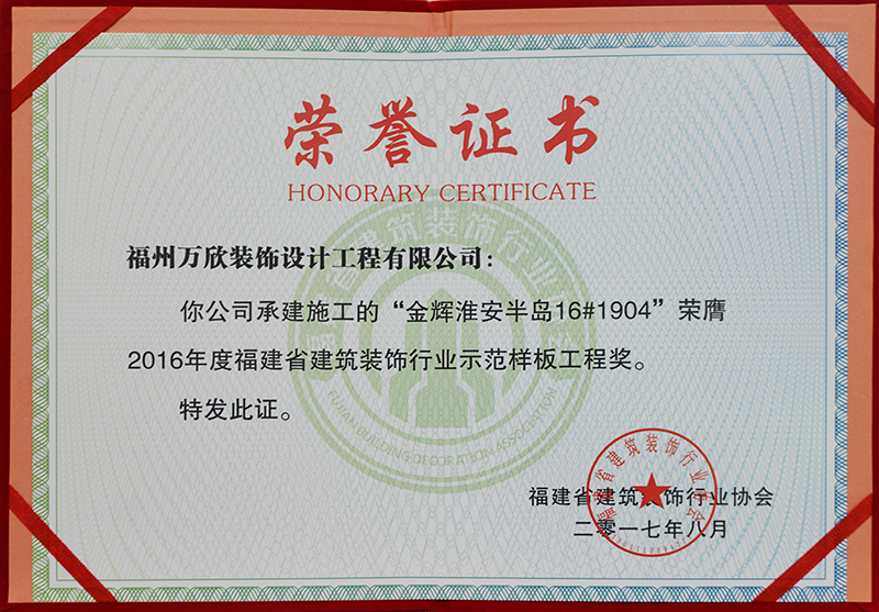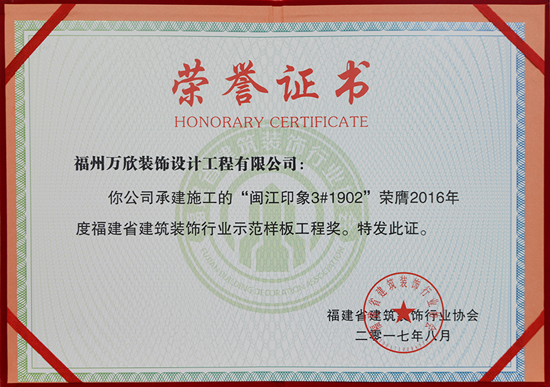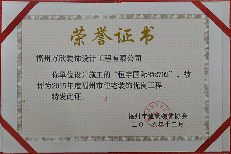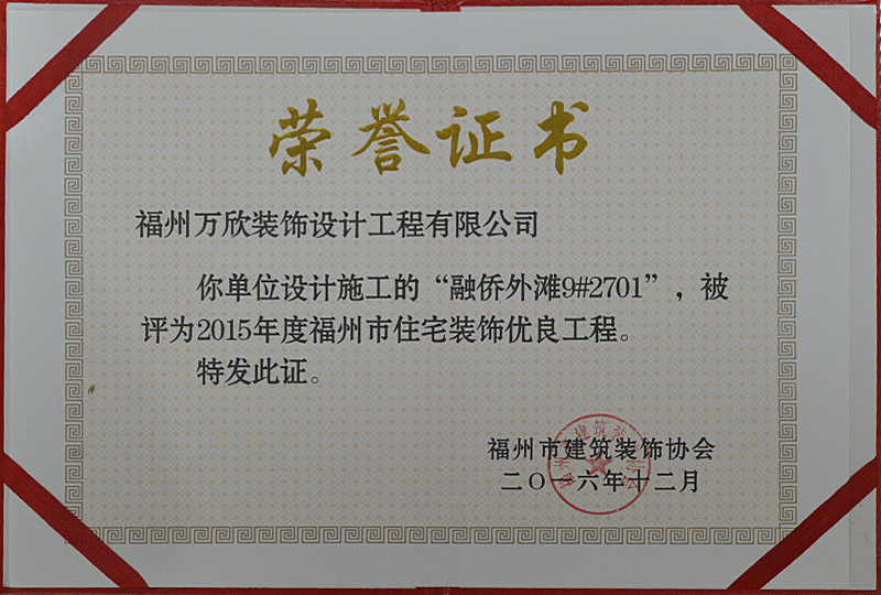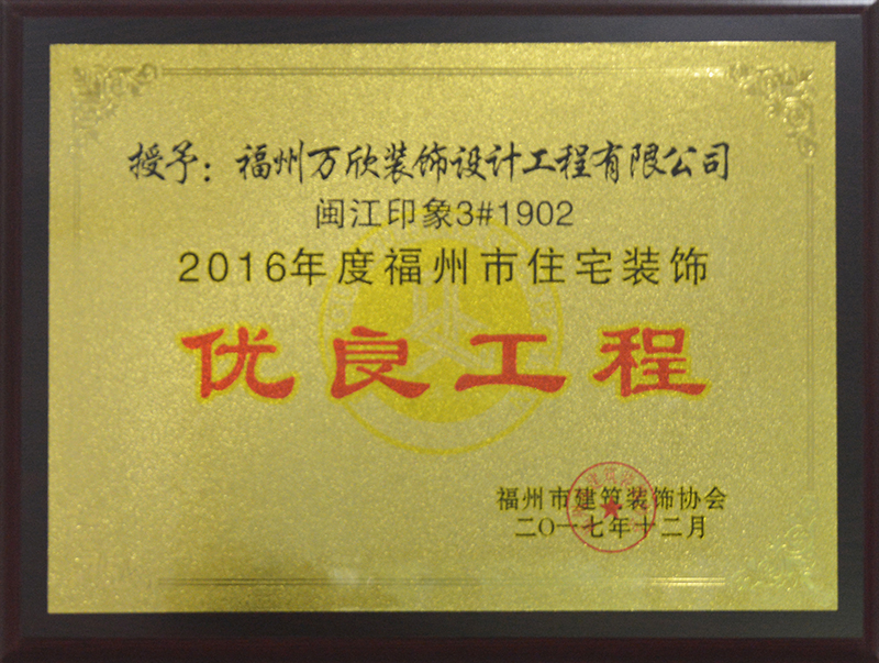 - >萬(wàn)欣裝飾“閩江印象3#1902”被福州市裝協(xié)評(píng)選為優(yōu)良工程