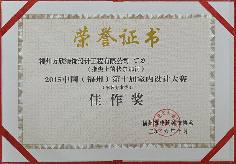 - >萬(wàn)欣裝飾作品《指尖上的伏爾加河》被評(píng)為中國(guó)(福州)第十屆室內(nèi)設(shè)計(jì)大賽(家裝方案類)佳作獎(jiǎng)