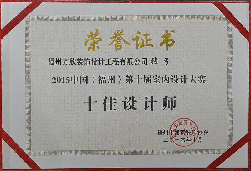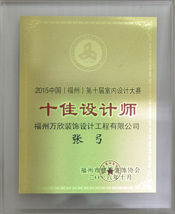 - >萬(wàn)欣裝飾設(shè)計(jì)師張弓被評(píng)為中國(guó)(福州)第十屆室內(nèi)設(shè)計(jì)大賽十佳設(shè)計(jì)師