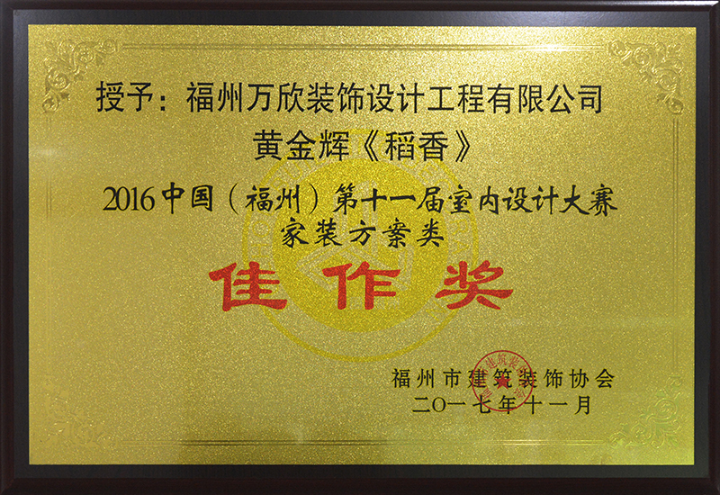 - >萬(wàn)欣裝飾作品《稻香》榮獲中國(guó)(福州)第十一屆室內(nèi)設(shè)計(jì)大賽家裝方案類佳作獎(jiǎng)