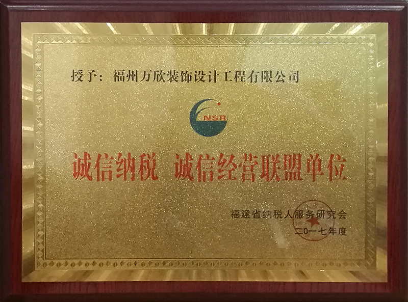 - >萬(wàn)欣裝飾被評(píng)為誠(chéng)信納稅 誠(chéng)信經(jīng)營(yíng)聯(lián)盟單位