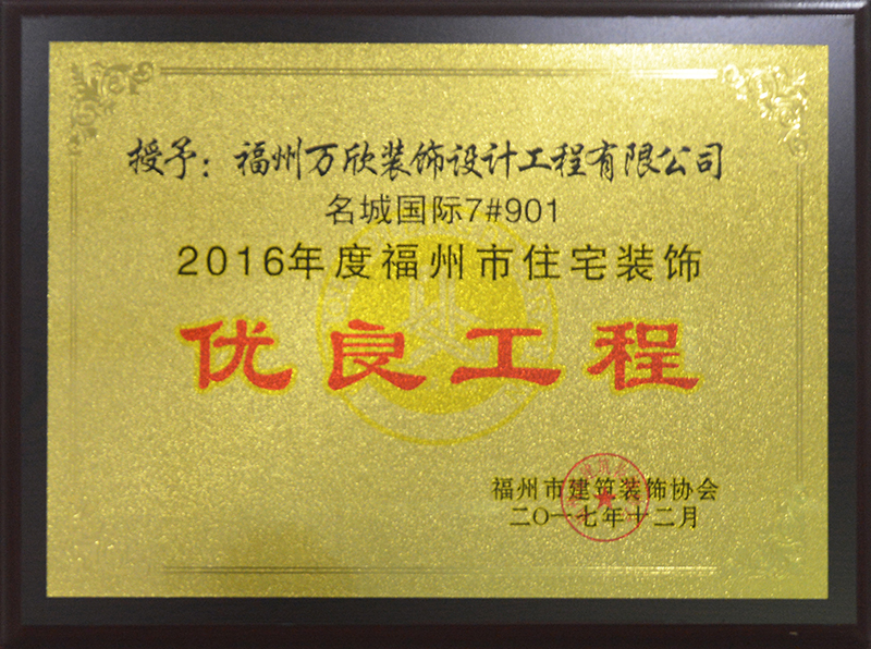 - >萬(wàn)欣裝飾“名城國(guó)際7#901”被福州市裝協(xié)評(píng)選為優(yōu)良工程
