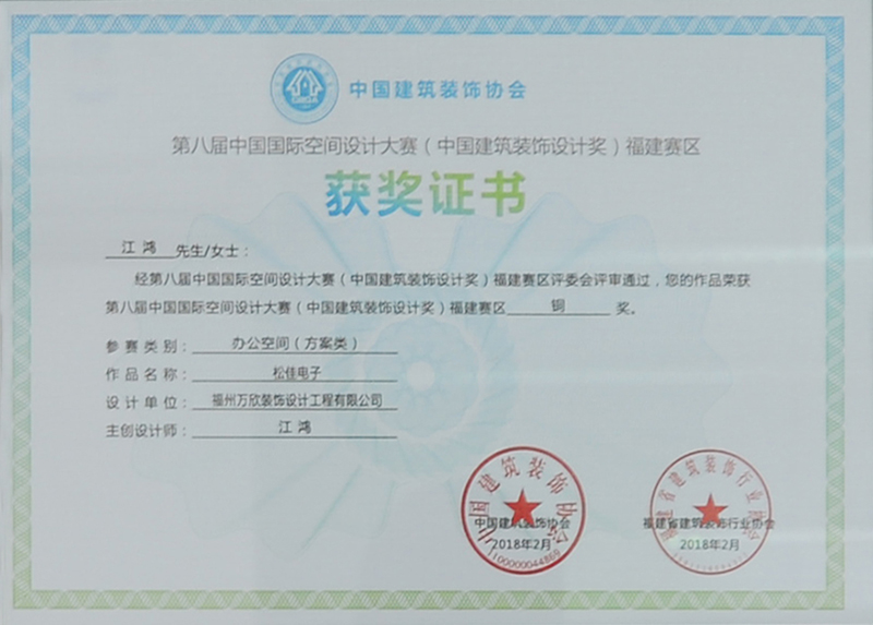 - >松佳電子作品榮獲第八屆中國(guó)國(guó)際空間設(shè)計(jì)大賽福建賽區(qū)銅獎(jiǎng)