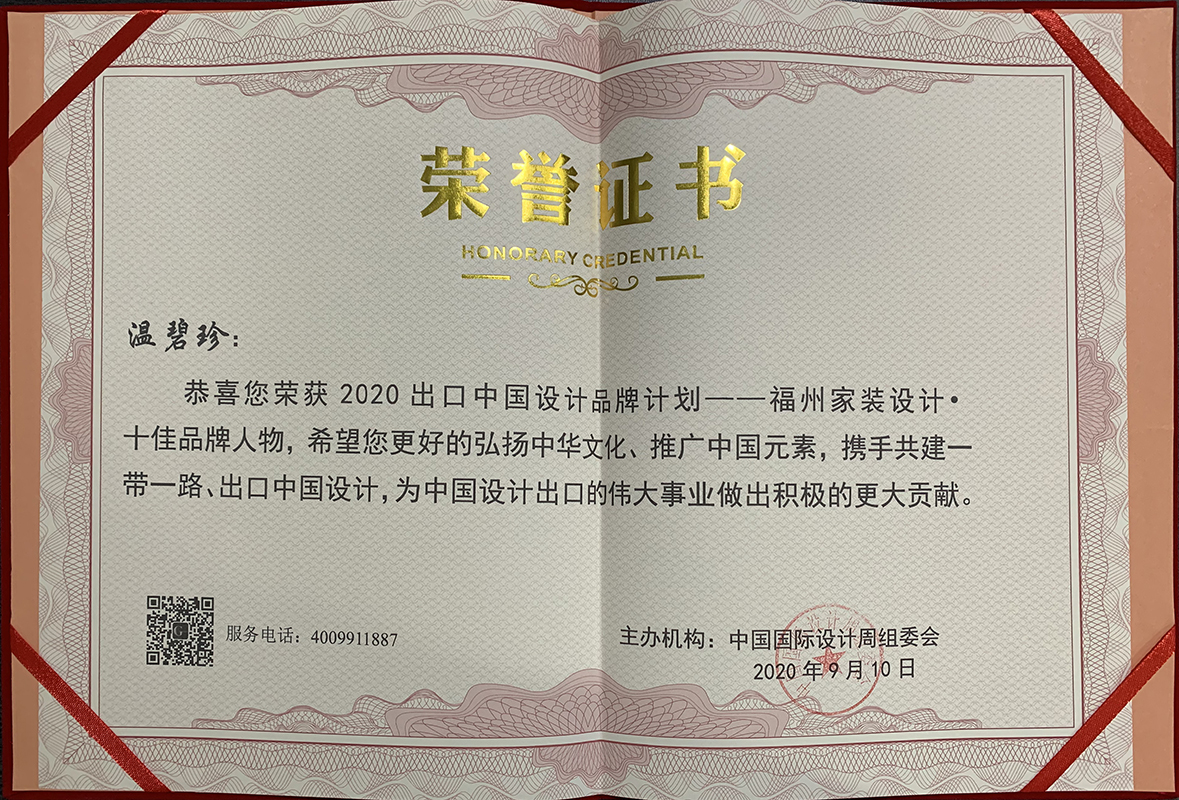 - >萬(wàn)欣裝飾設(shè)計(jì)師溫碧珍榮獲2020出口中國(guó)設(shè)計(jì)品牌計(jì)劃——福州家裝設(shè)計(jì)·十佳品牌人物