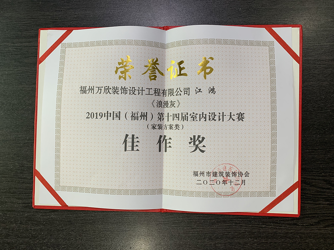 - >萬(wàn)欣裝飾作品《浪漫灰》被評(píng)為中國(guó)(福州)第十四屆室內(nèi)設(shè)計(jì)大賽(家裝方案類)佳作獎(jiǎng)