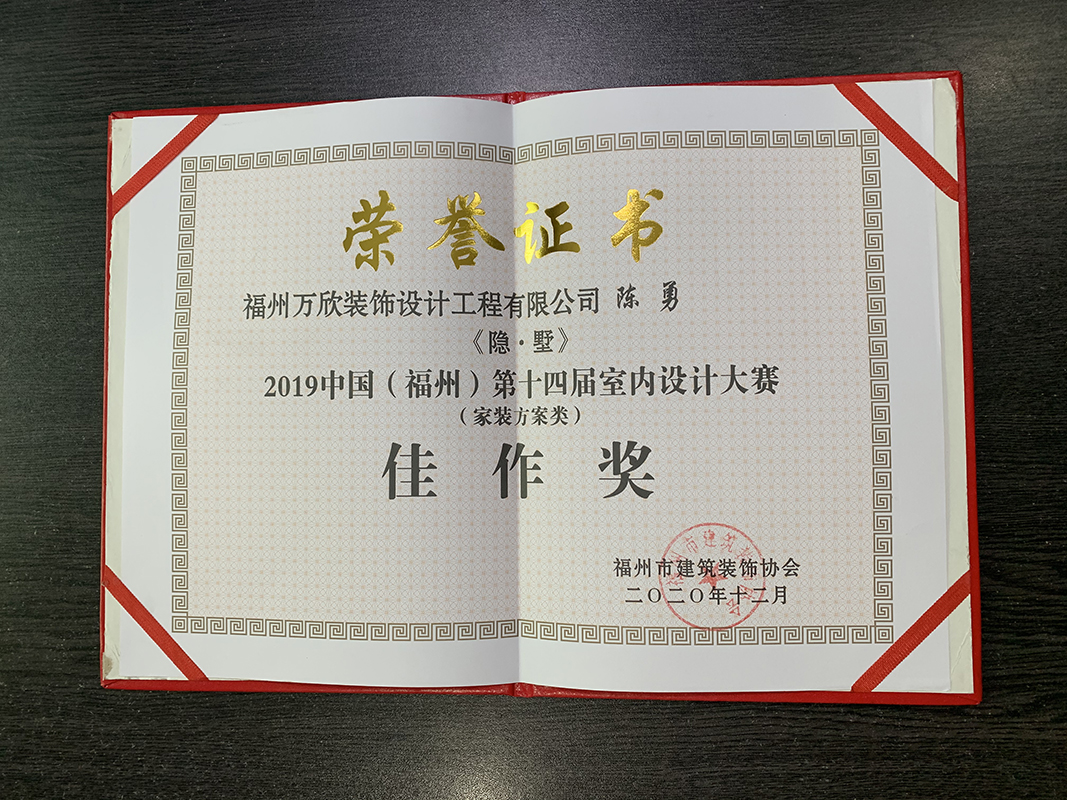 - >萬(wàn)欣裝飾作品《隱.墅》被評(píng)為中國(guó)(福州)第十四屆室內(nèi)設(shè)計(jì)大賽(家裝方案類)佳作獎(jiǎng)