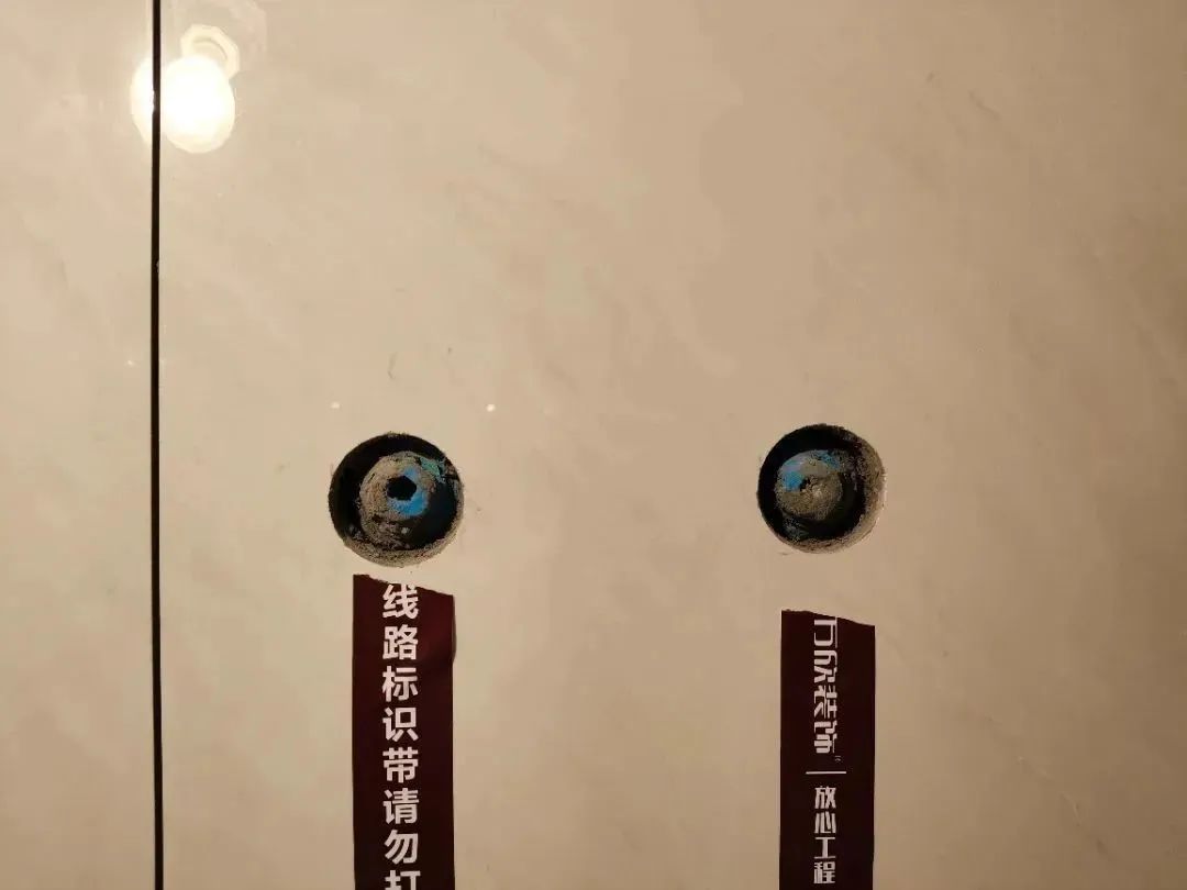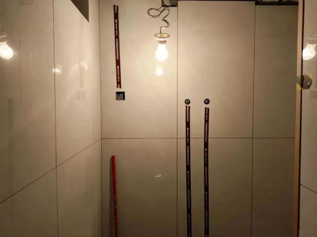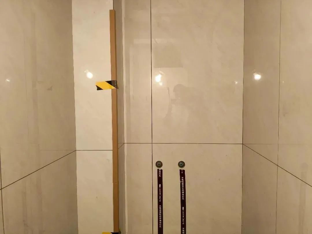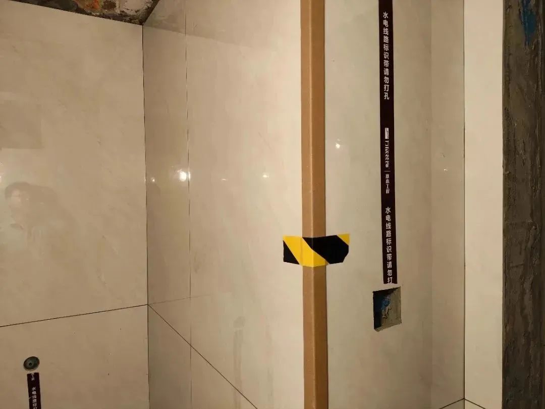 △粘貼水電標(biāo)識這一步很重要。在瓷磚背后都是有很多水電管,后期安裝時稍不注意就會打到它們。粘貼標(biāo)識,可以降低后期施工產(chǎn)生管道破損的風(fēng)險。