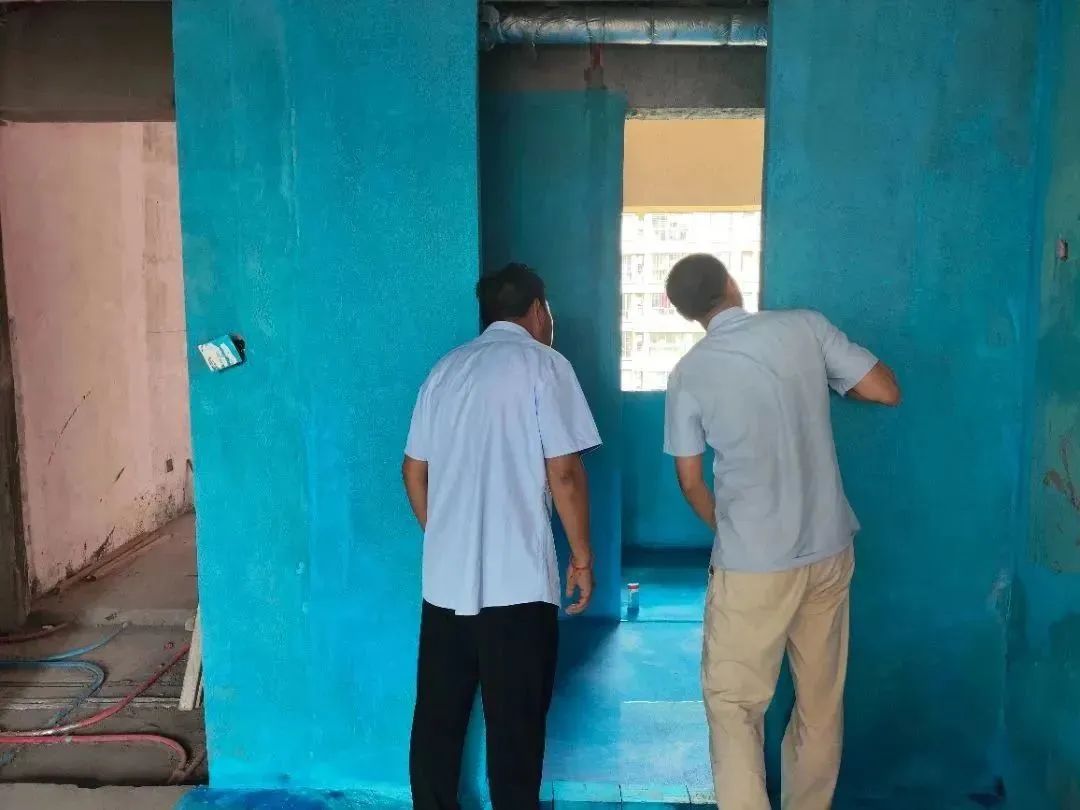 △衛(wèi)生間和廚房等經(jīng)常用水的地方需要涂刷防水層 ,采用快可美防水漿料(衛(wèi)生間采用3+1防水,澆筑防水地梁+兩道防水涂刷),防止出現(xiàn)漏水情況出現(xiàn)。