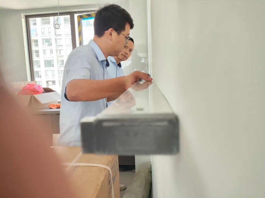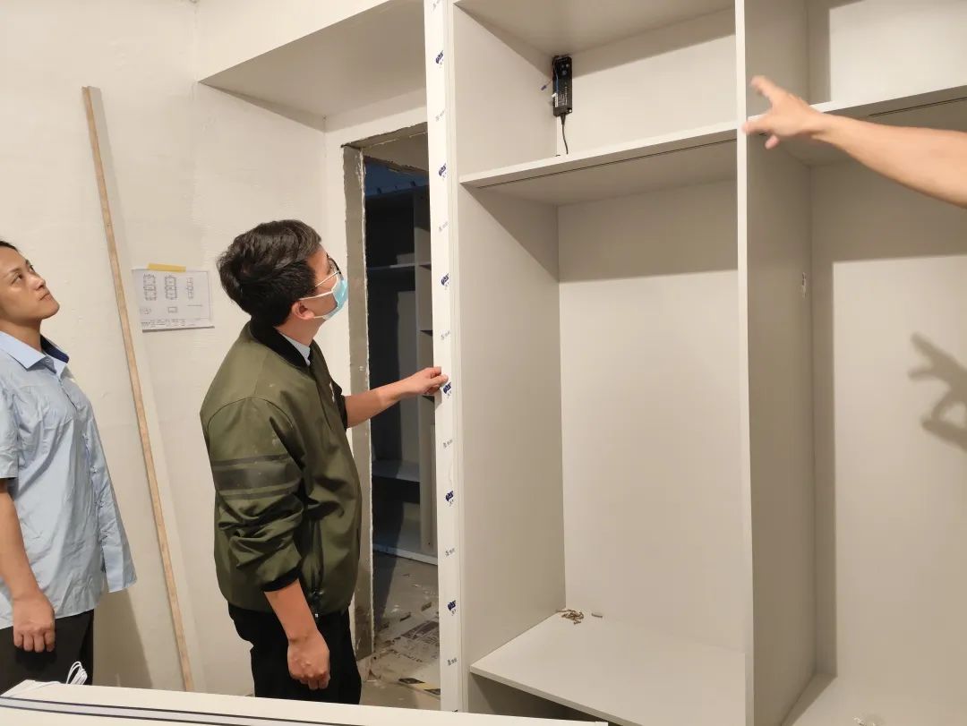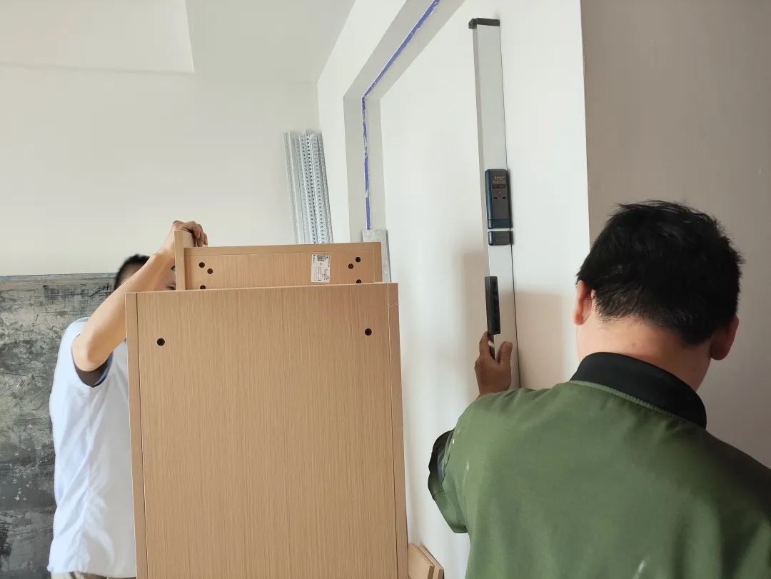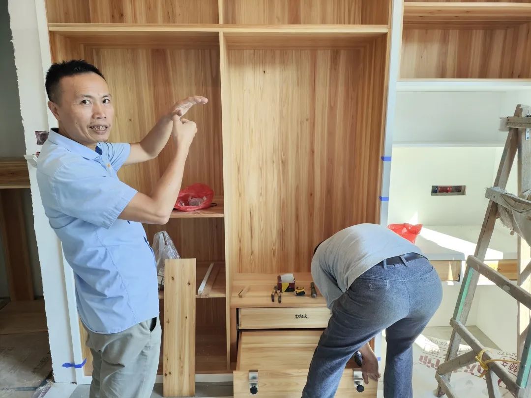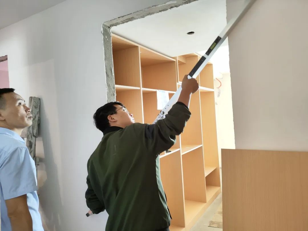 △現(xiàn)場(chǎng)對(duì)柜子進(jìn)行仔細(xì)檢查,確保業(yè)主入住后的正常使用。