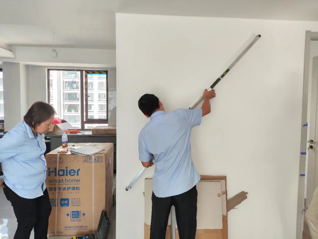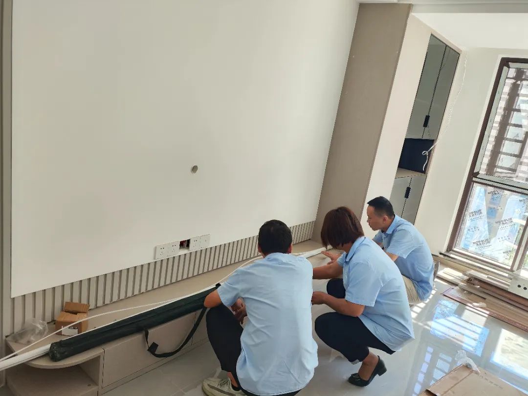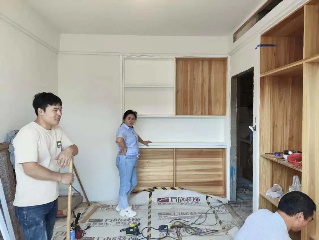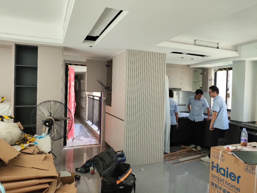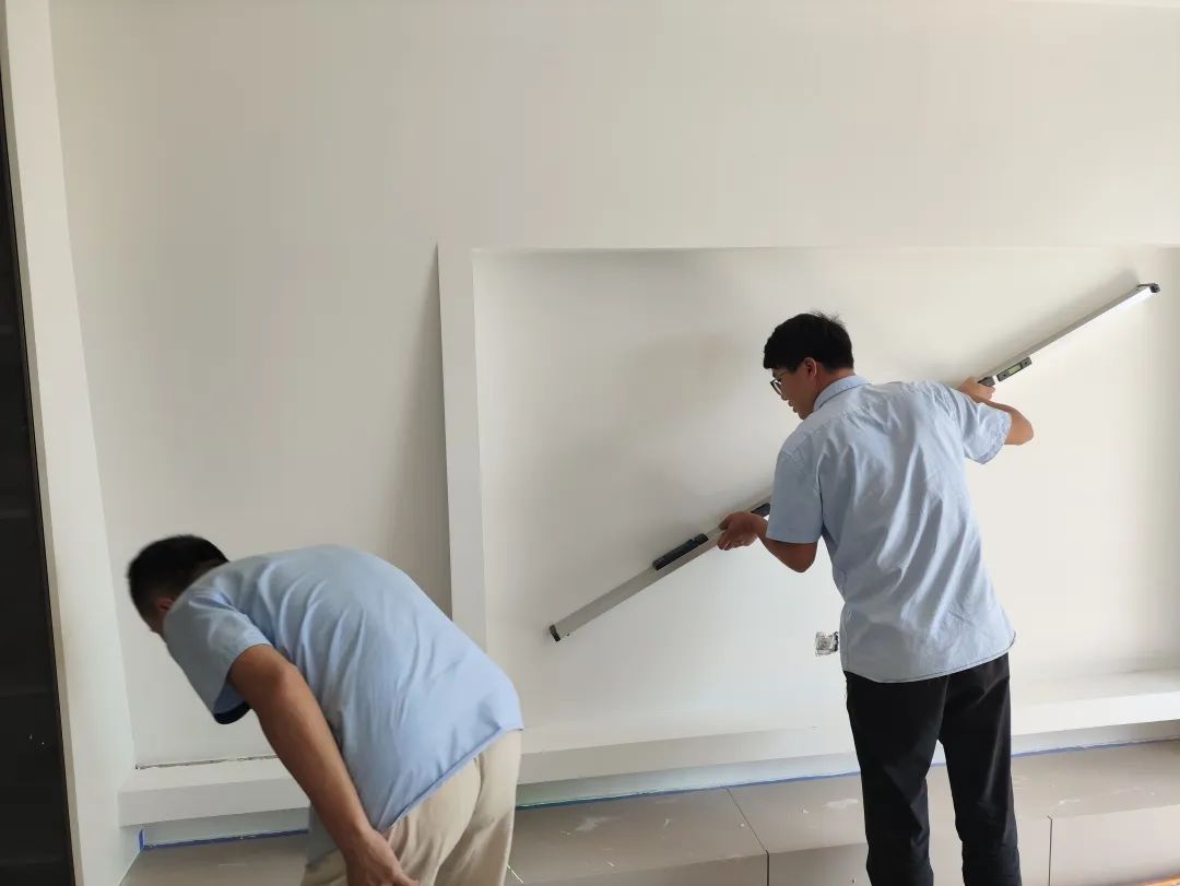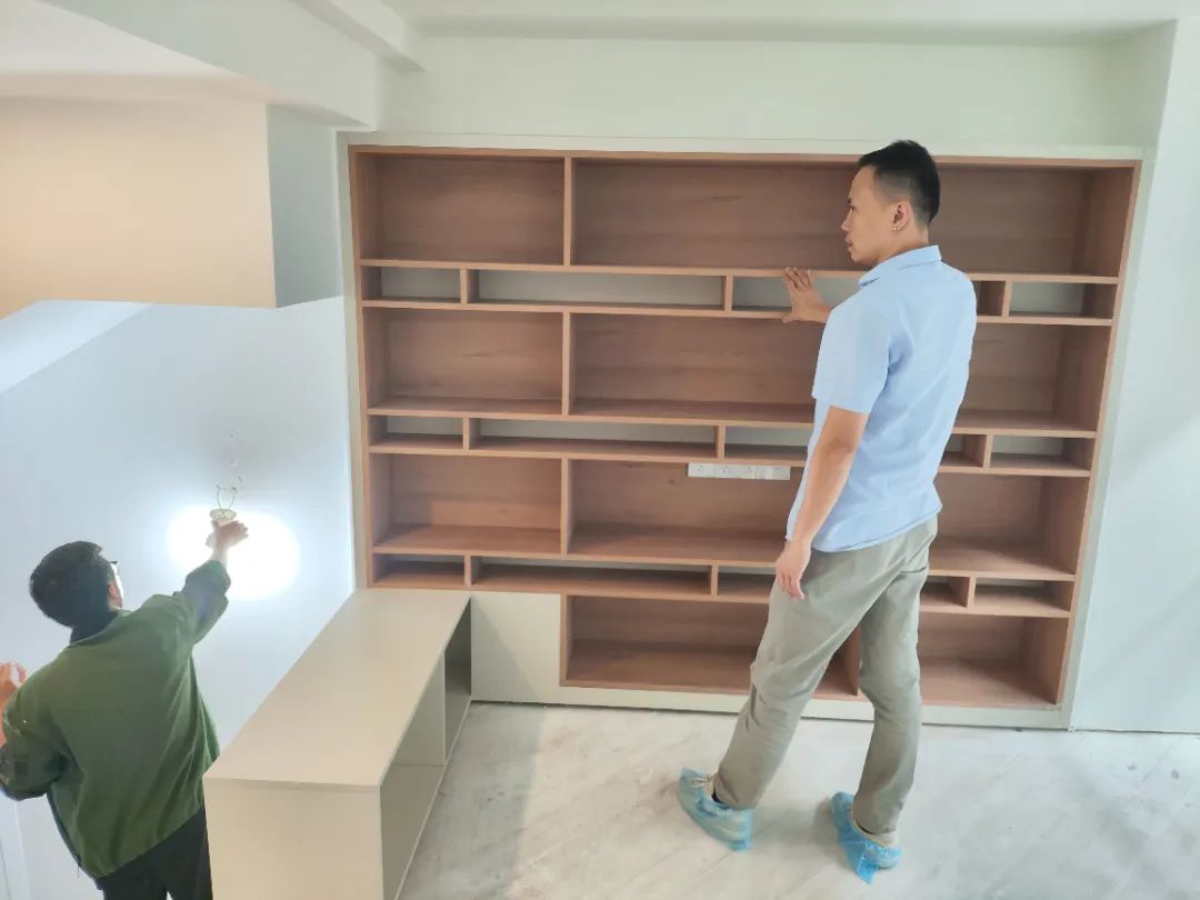△現(xiàn)場(chǎng)對(duì)柜子進(jìn)行仔細(xì)檢查,確保業(yè)主入住后的正常使用。