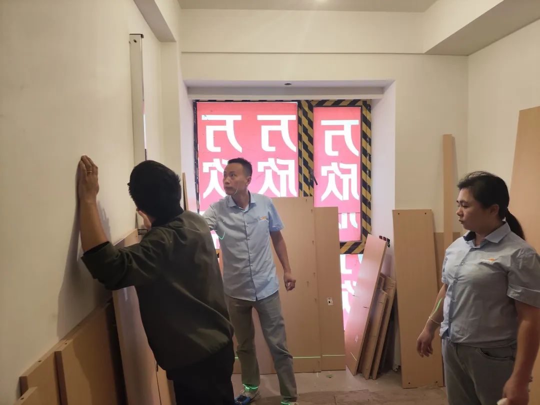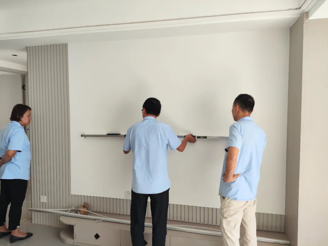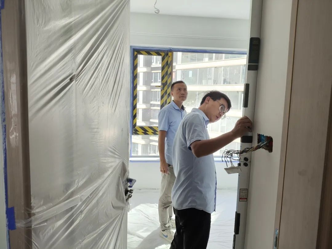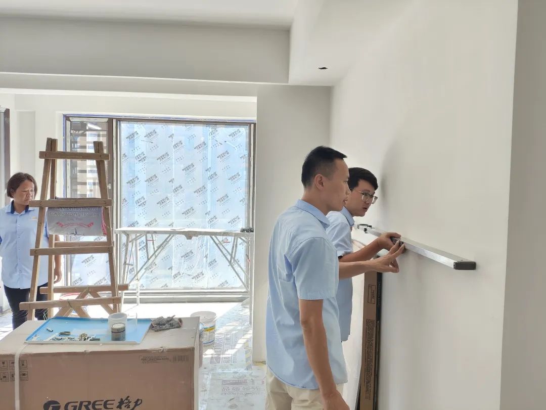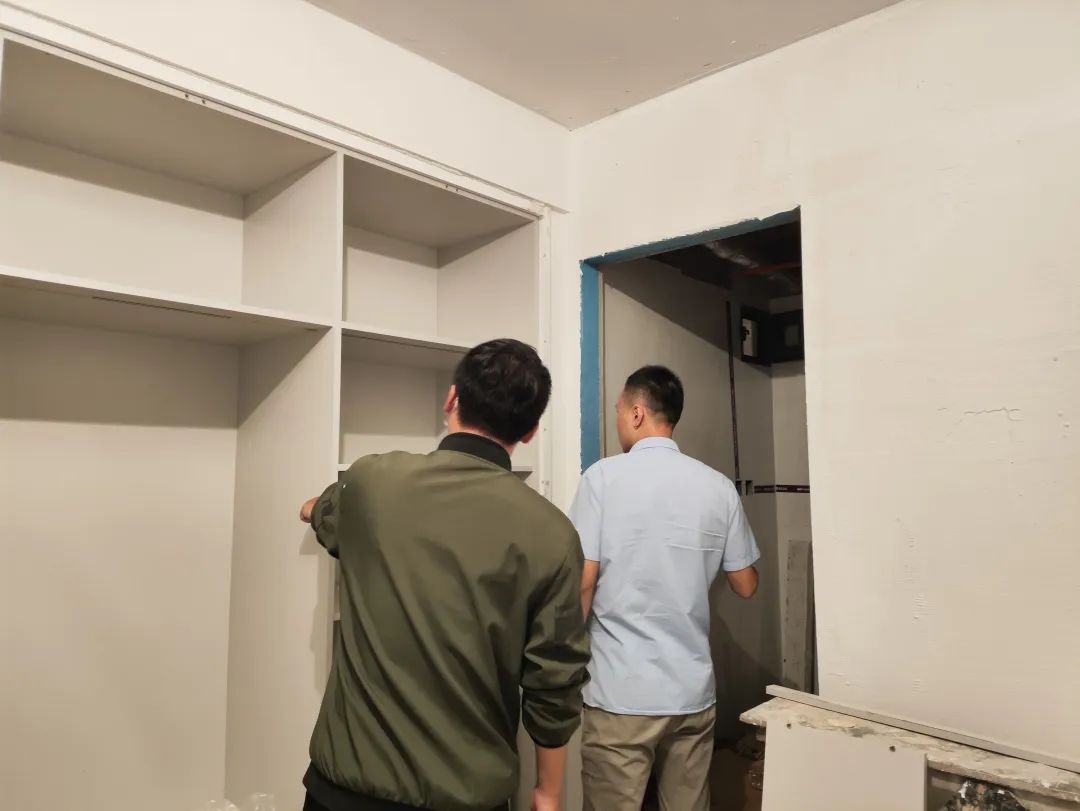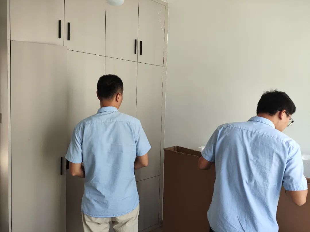 △現(xiàn)場(chǎng)對(duì)柜子進(jìn)行仔細(xì)檢查,確保業(yè)主入住后的正常使用。
