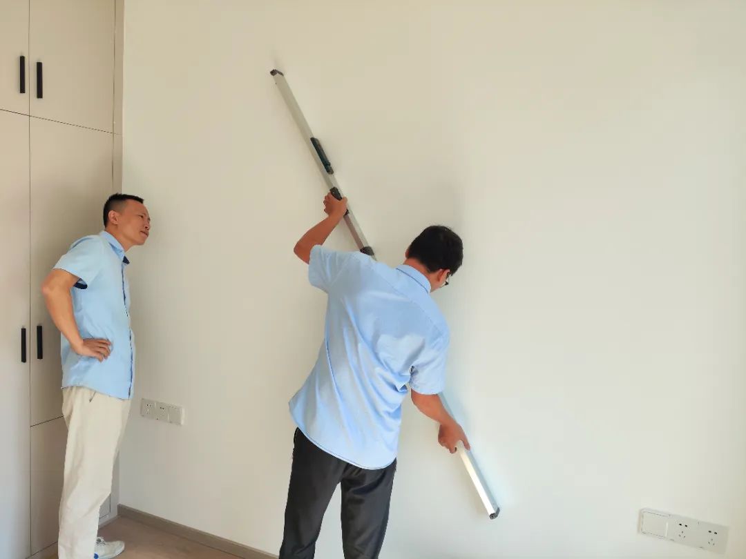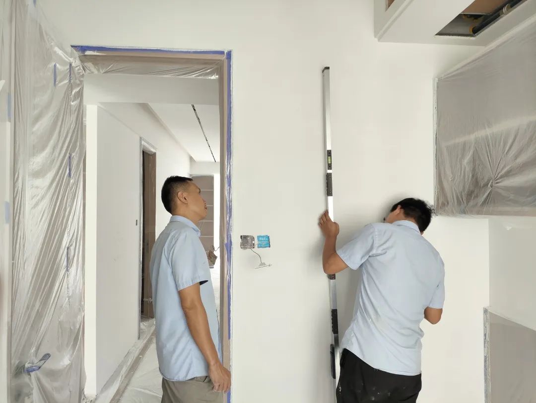 △轉(zhuǎn)角垂直的檢查也是檢驗(yàn)中的一個(gè)關(guān)鍵點(diǎn)之一。此時(shí)我們會(huì)重點(diǎn)檢查陰陽(yáng)角,因?yàn)檫@關(guān)系到后期的家居擺放、衣柜、浴柜、櫥柜安裝等。若轉(zhuǎn)角不垂直,不僅會(huì)影響視覺體驗(yàn),還會(huì)影響結(jié)構(gòu)的穩(wěn)定性。