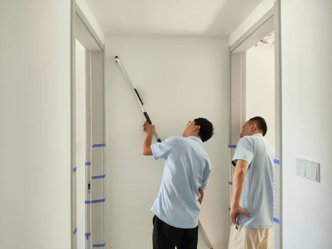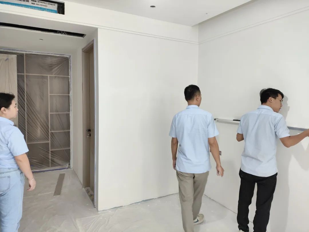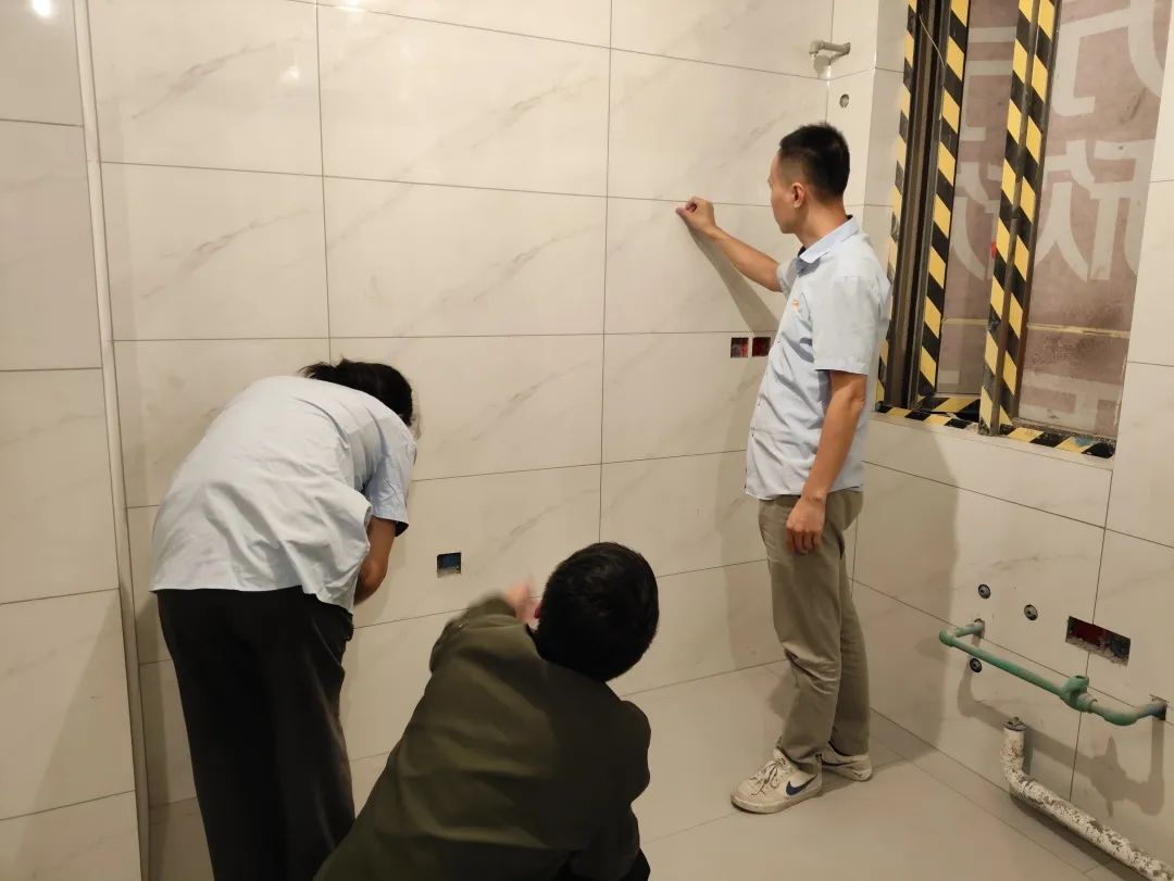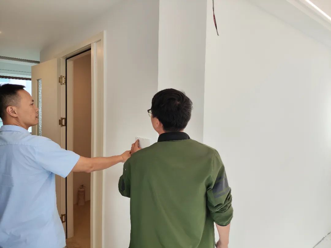 △現(xiàn)場(chǎng)對(duì)油漆、柜子、衛(wèi)浴等已安裝設(shè)備進(jìn)行仔細(xì)檢查,確保業(yè)主入住后的正常使用。