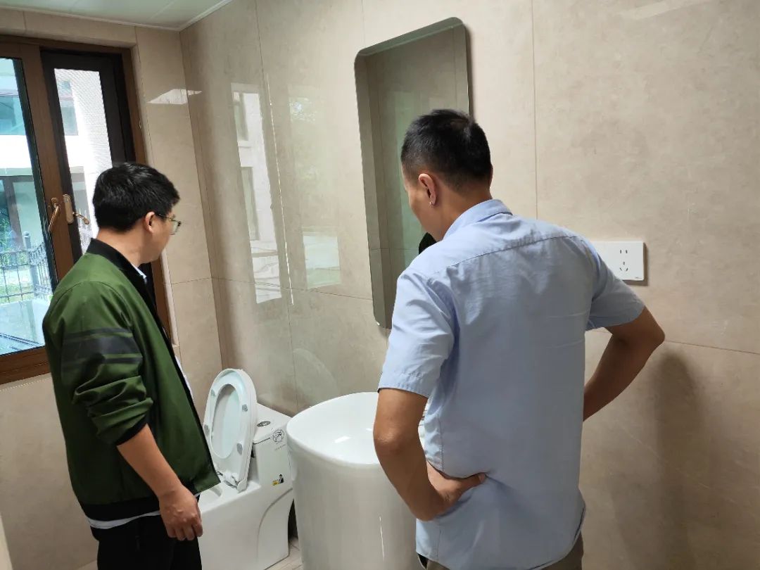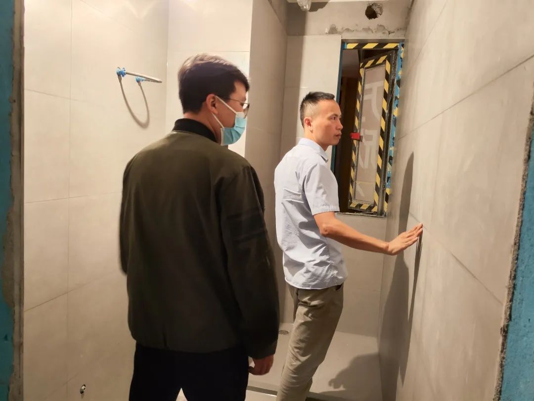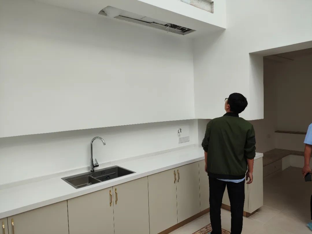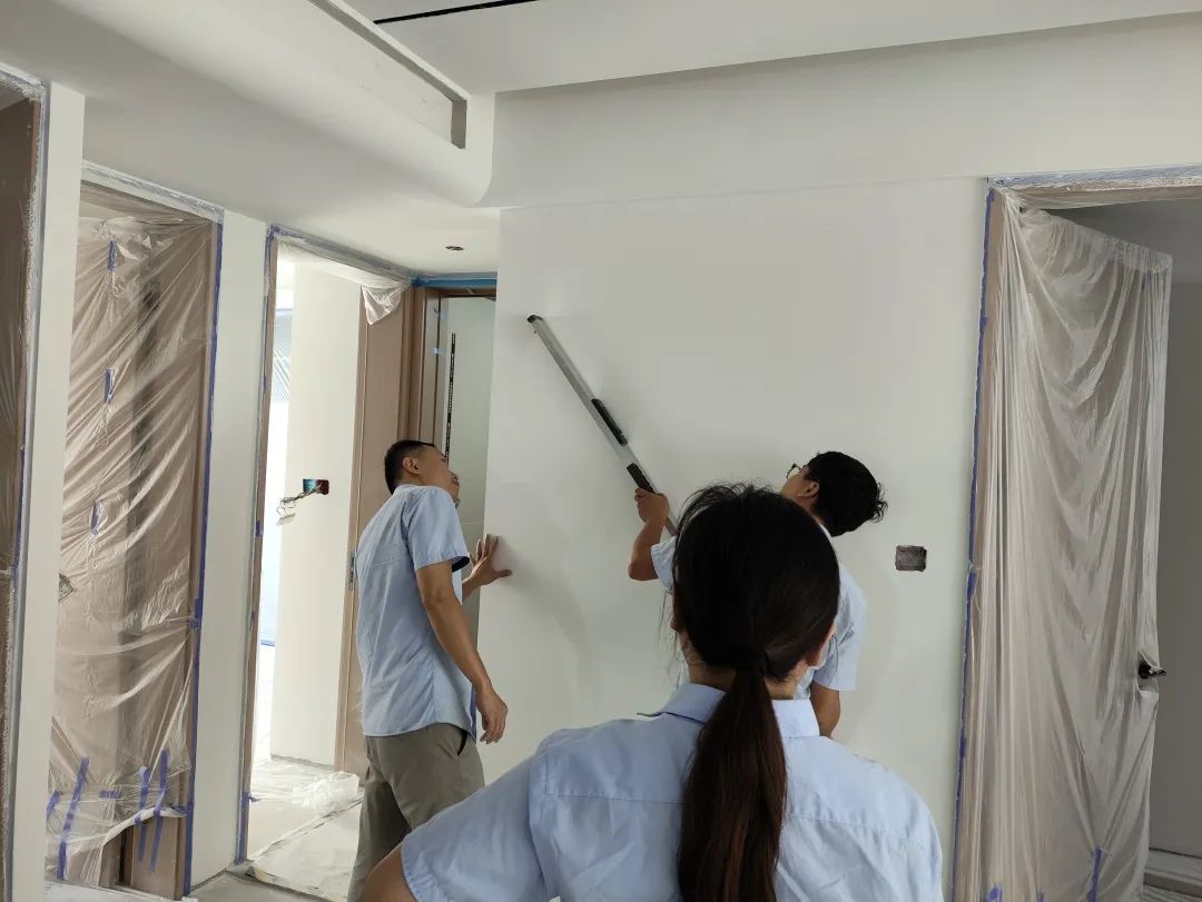 △現(xiàn)場(chǎng)對(duì)油漆、柜子、衛(wèi)浴等已安裝設(shè)備進(jìn)行仔細(xì)檢查,確保業(yè)主入住后的正常使用。