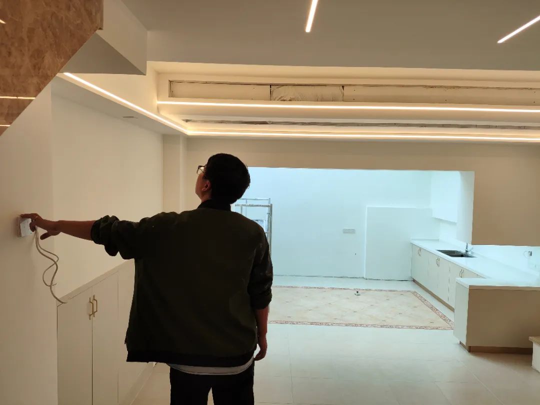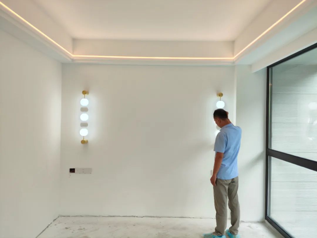 △檢查墻面平整度,在燈光照射下是否會(huì)有波浪紋影響整體美觀。