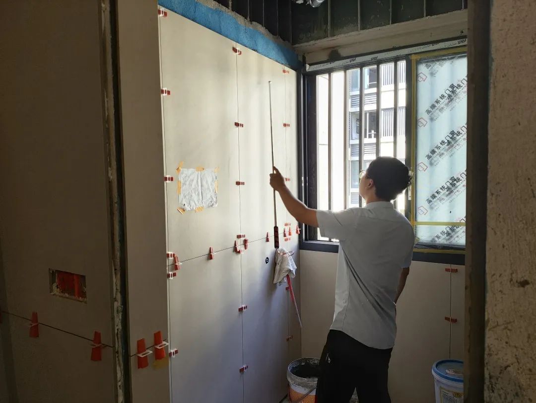 △用兩米靠尺和激光水平儀測(cè)量新砌墻的平整度和垂直度,新砌墻體平整,提高后續(xù)墻體粉刷及油漆工藝墻面平整度,為后續(xù)工藝的施工打好基礎(chǔ)。