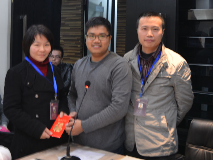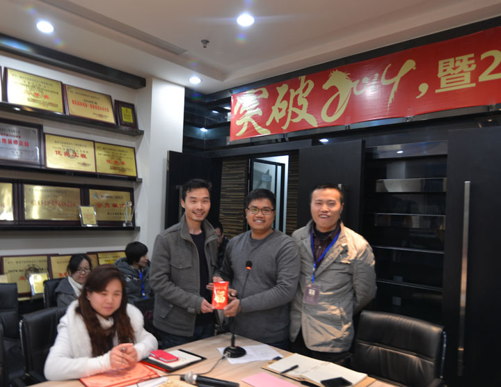 ▲緊接著是由市場部林經(jīng)理發(fā)言,與大家一同分享了市場部一年的工作概況,針對新年計劃他滿懷信心的說道:2014年,市場部一定會完成目標。
